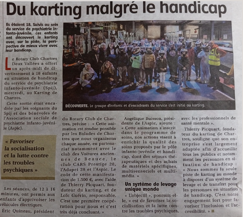 Mais au-delà des carrosseries brillantes et des moteurs vrombissants, ce sont surtout la générosité et la solidarité qui ont animé ces deux journées. Grâce à l’engagement conjoint du Rotary Club de Chartres des Deux Vallées, du Club des Voitures Anciennes de Beauce, de Cars Prestige 28, de l’ADAPEI 28 et de notre association ASPIC, les fonds récoltés serviront à financer un séjour exceptionnel pour une trentaine d’enfants en situation de handicap. Une parenthèse de découverte, de joie et d’évasion à laquelle ils aspirent tant.